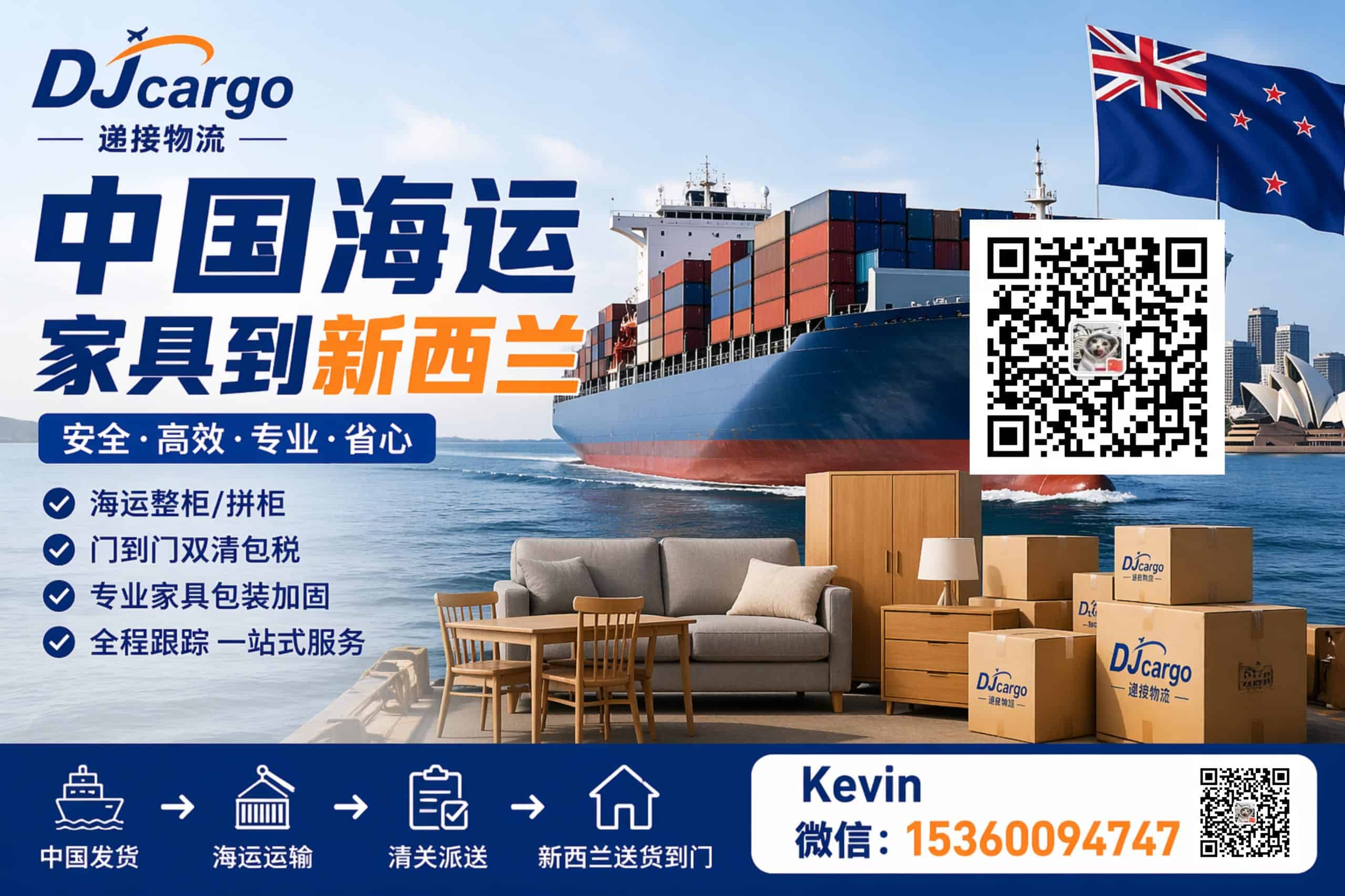 可以从中国海运家具到新西兰吗? 答案是可以的。 递接物流Kevin专注于为中国海运到新西兰提供高效、便捷的出口运输服务,无论是室内家具,室外家具,办公家具还是其
